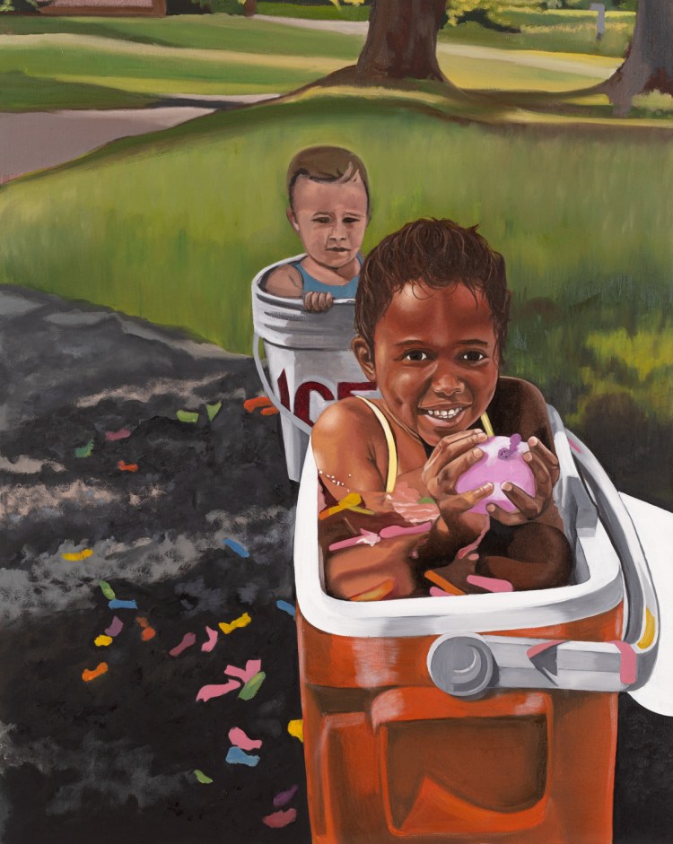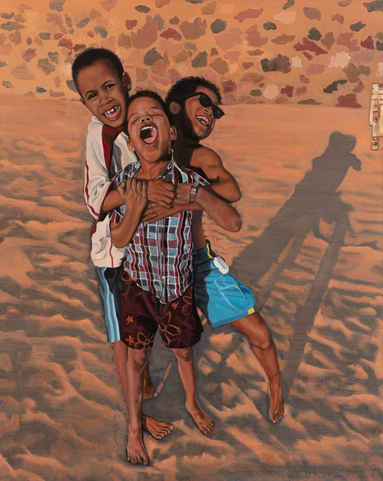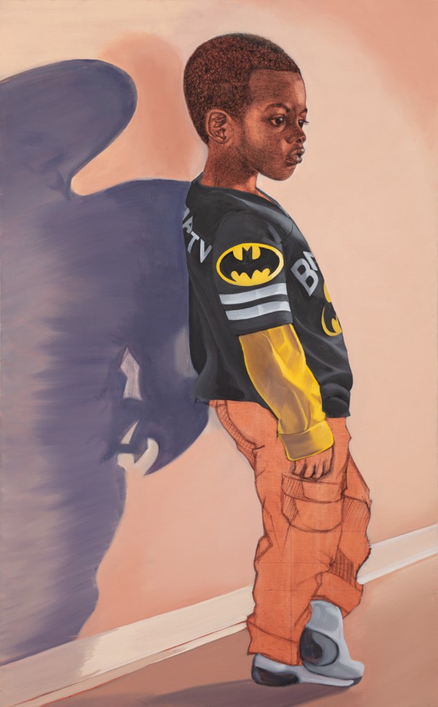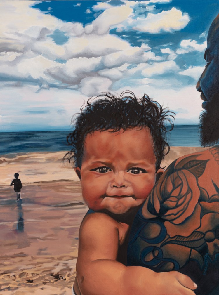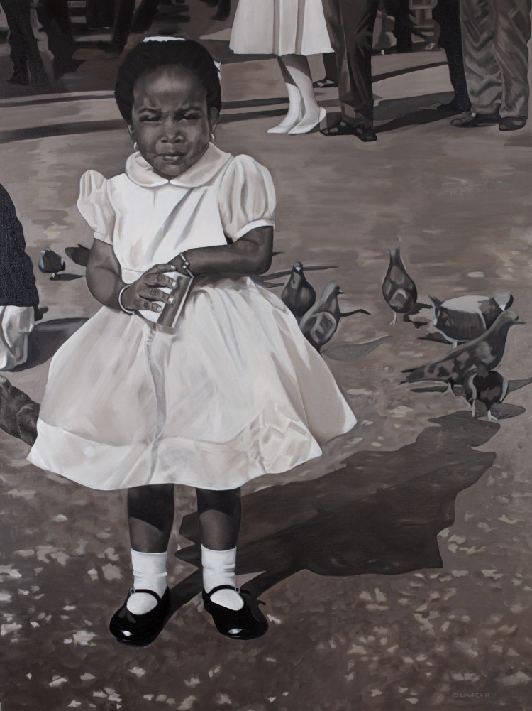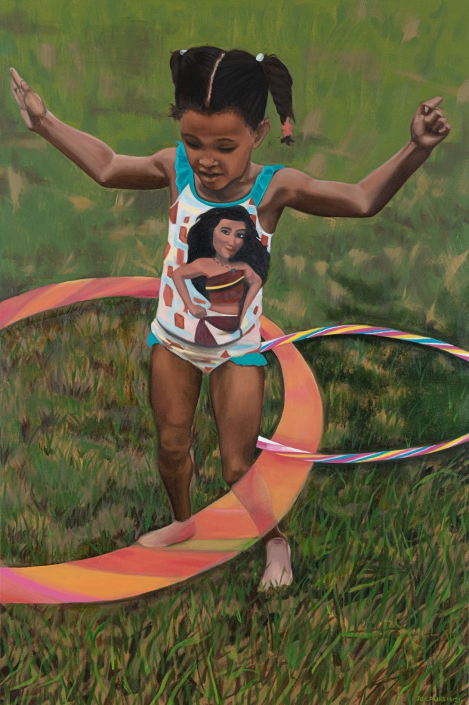 This painting is the first of her Dream Chaser series, a body of work that revisits youthful assumptions on justice, fairness and equality of opportunity from a child’s perspective. The series is intended to rouse a collective response and dialogue across diverse sectors that center on the wellbeing of all children regardless of their identity or life circumstances.
